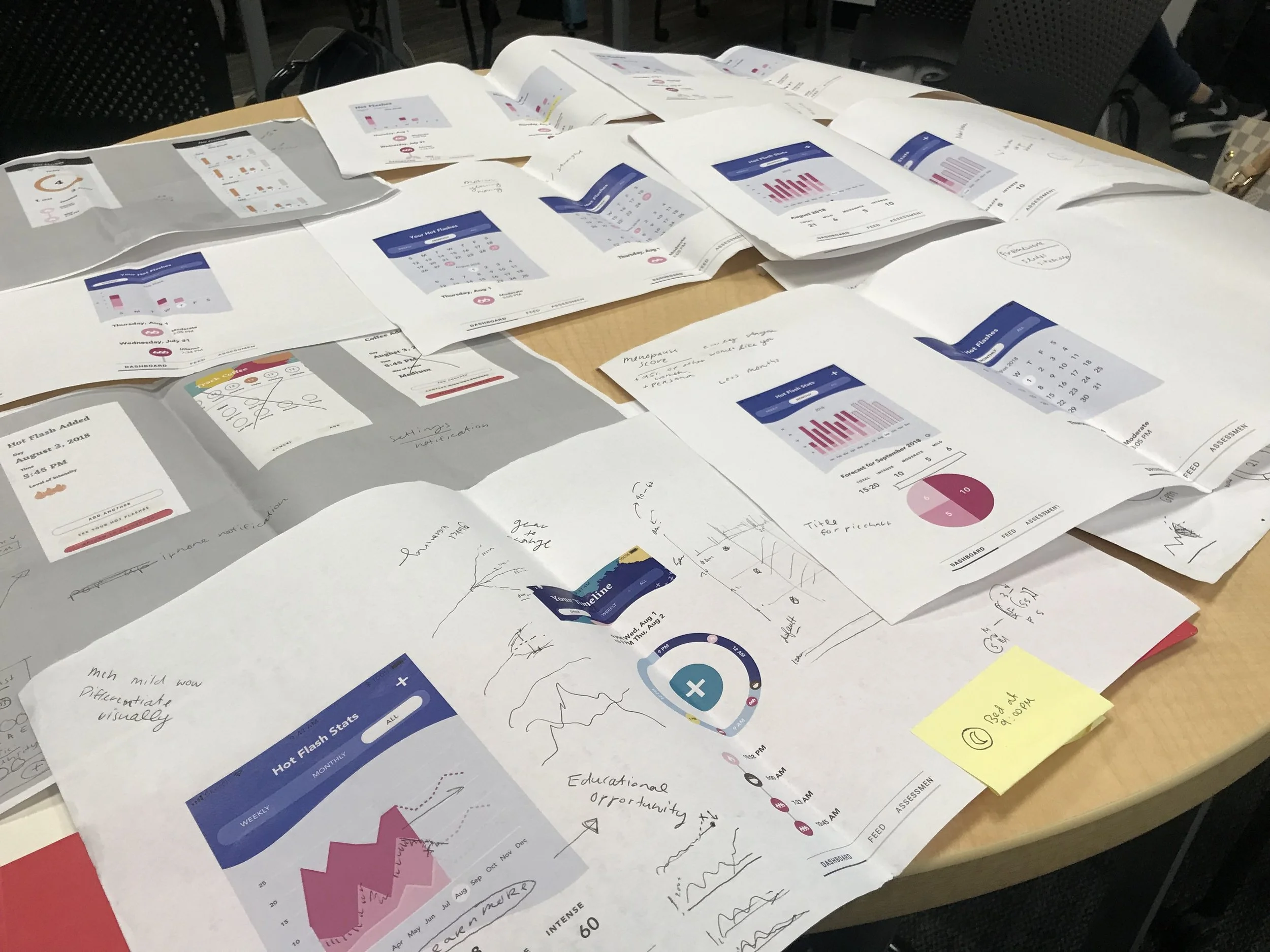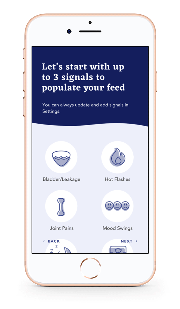 We decided to focus on designing soley a mobile application utilizing Apple Health features that tracks menopausal signals and compares that data to learn behaviors and respond back with personalized suggestions and content.