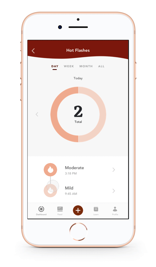 Over time, one can review their hot flashes by severity and frequency over time.