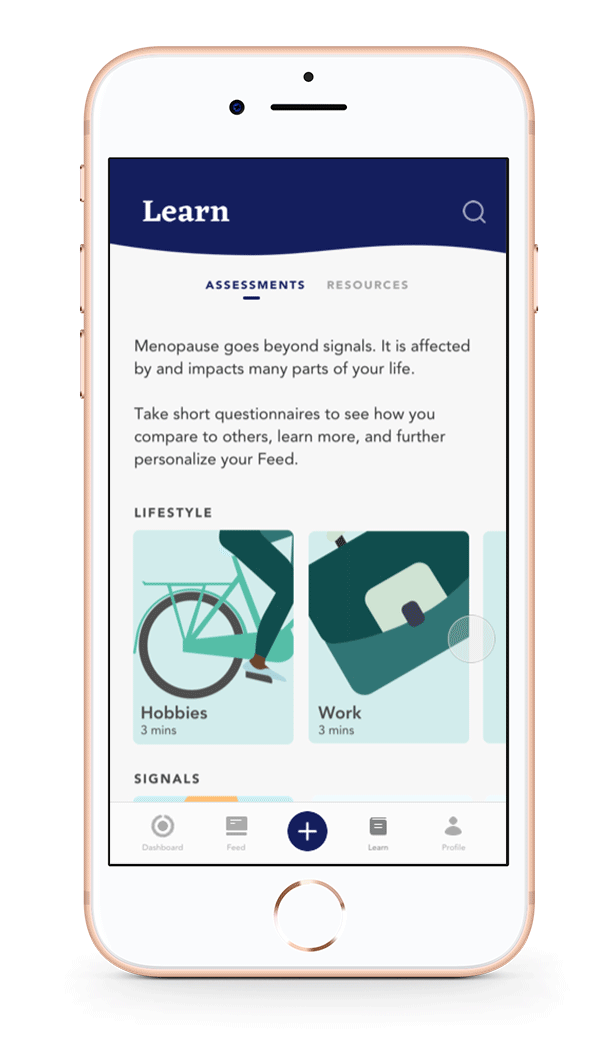 To further learn about your menopausal experience, you can take assessments in particular categories that also help in personalizing your feed.
